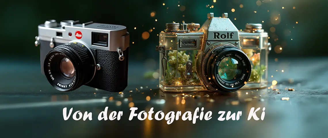 Von der Fotografie zur KI ist nicht nur ein Trend in der modernen Bildgestaltung. Es ist auch mein ganz persönlicher Weg innerhalb der Fotografie. Angefangen habe ich in den 70ern des letzten Jahrhunderts in meiner Studienzeit mit der analogen Fotografie. Mit dem Aufkommen der digitalen Kameras habe ich erst teilweise, dann vollständig in den digitalen Bereich gewechselt.